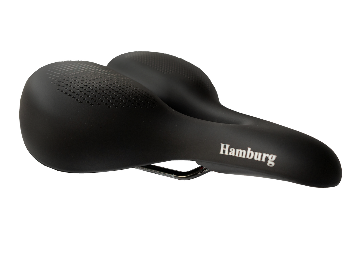 Der Hamburg zeichnet sich durch seine Tragebügel im hinteren Bereich aus. Der Hamburg eignet sich besonders durch seine Wasserabweisende Oberfläche und seine enorm starke Druckerleichterung im Mittelkanal des Sattels. Dieses macht den Hamburg zu einem Fahrvergnügen für jeden Tag und auch auf längeren Radtouren. Der Einsatzbereich verleiht dem Hamburg ein großes Spektrum.