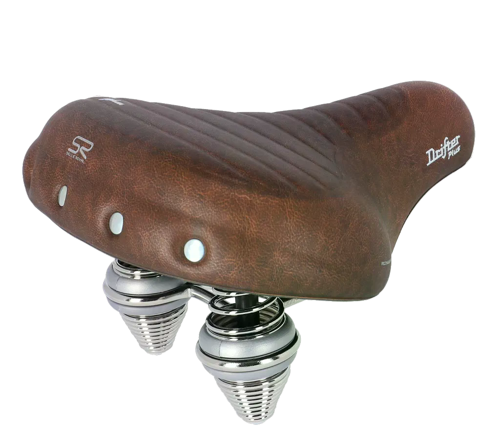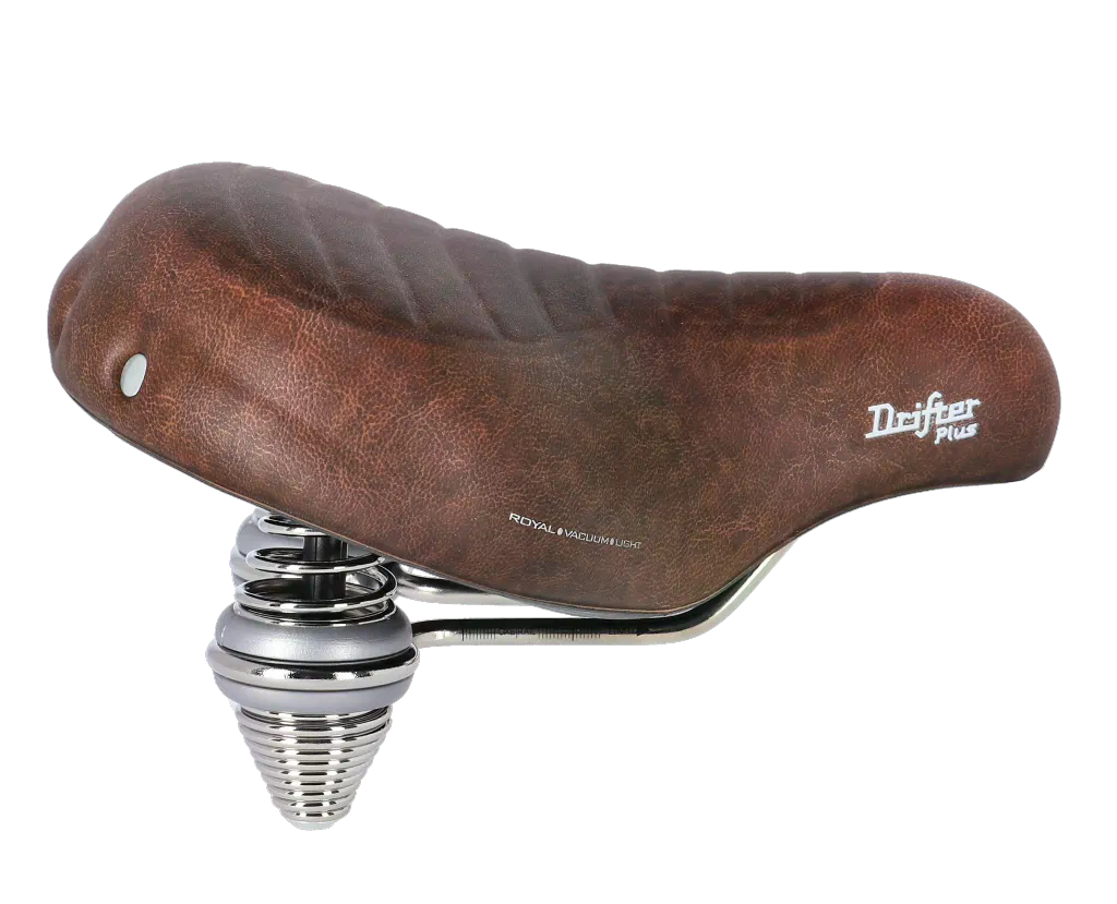 Mit dem Drifter rollen Sie stilsicher durch die Stadt. Mit seinen Vintage-inspirierten Metallnieten, den Doppelfedern und dem kultigen, abgerundeten Design ist dieser Sattel ein Must-have für Liebhaber klassischer Fahrräder. Wer sich für Stil entscheidet, muss natürlich keine Kompromisse beim Komfort eingehen: Die Royalgel™-Polsterung sorgt für optimalen Sitzkomfort während Sie unbeschwert in der Stadt unterwegs sind